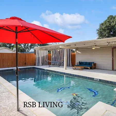 The Spectacular 4Br 2.5Ba Holiday Home With Pool And Grill prides itself on offering exemplary services for a home-away-from-home experience. Guests can take advantage of Wi-Fi connectivity, laundry facilities, and a private pool, making leisure and convenience a top priority. Here, you can unwind with family games or simply relax by the water while soaking up the sun.